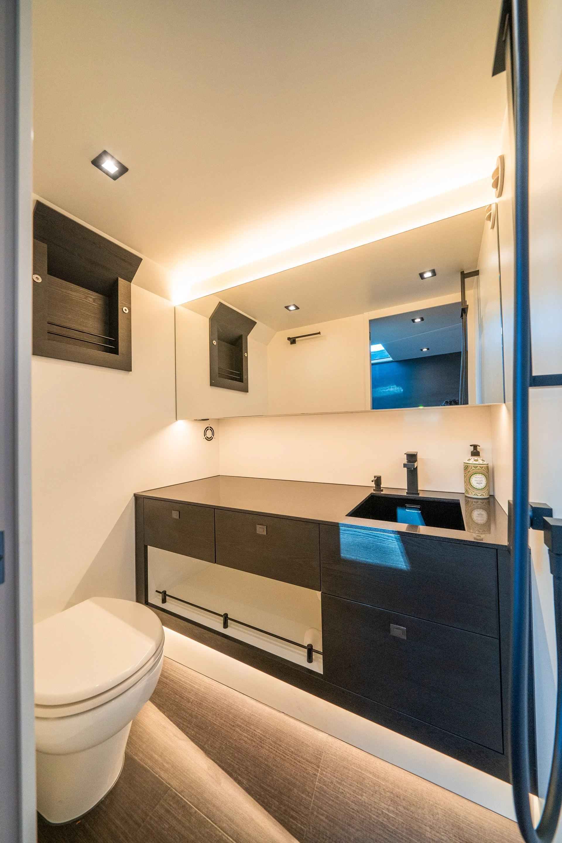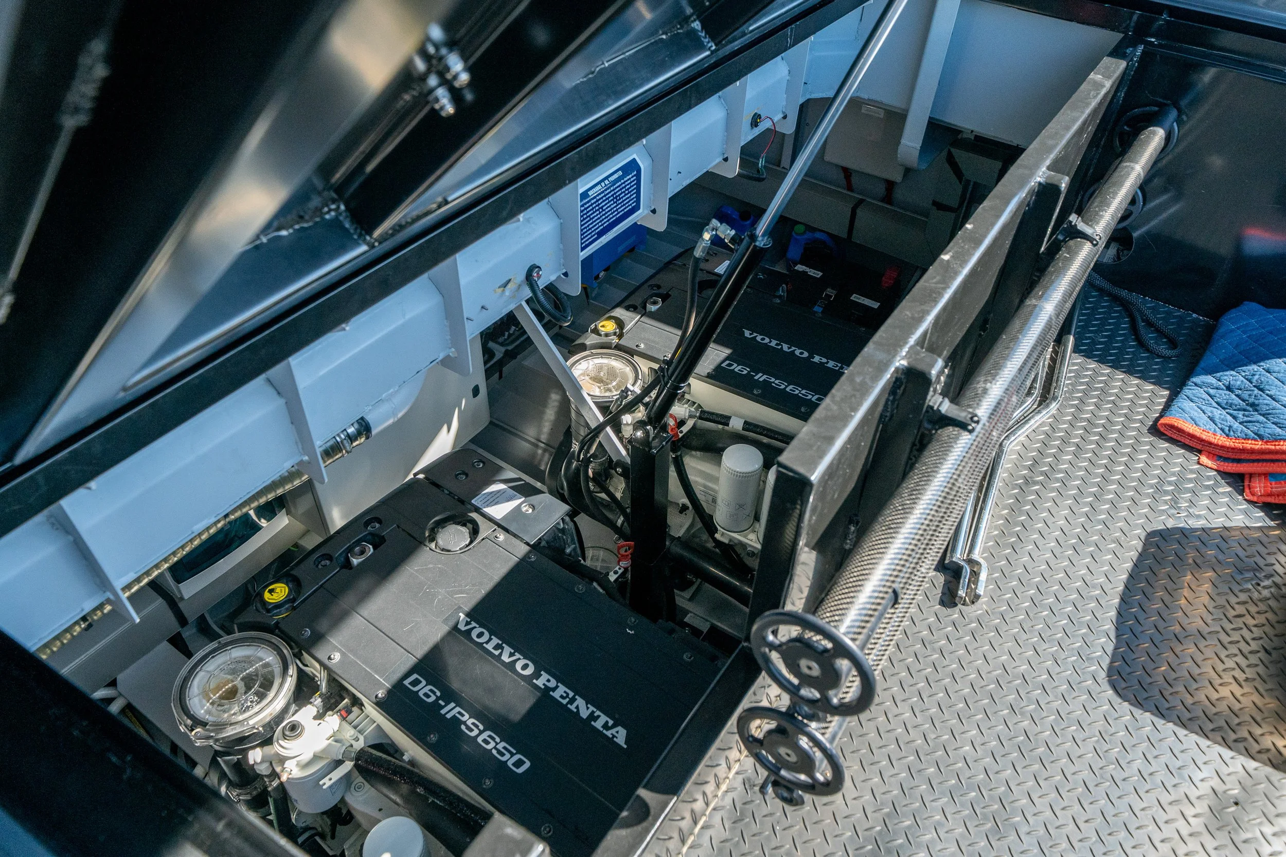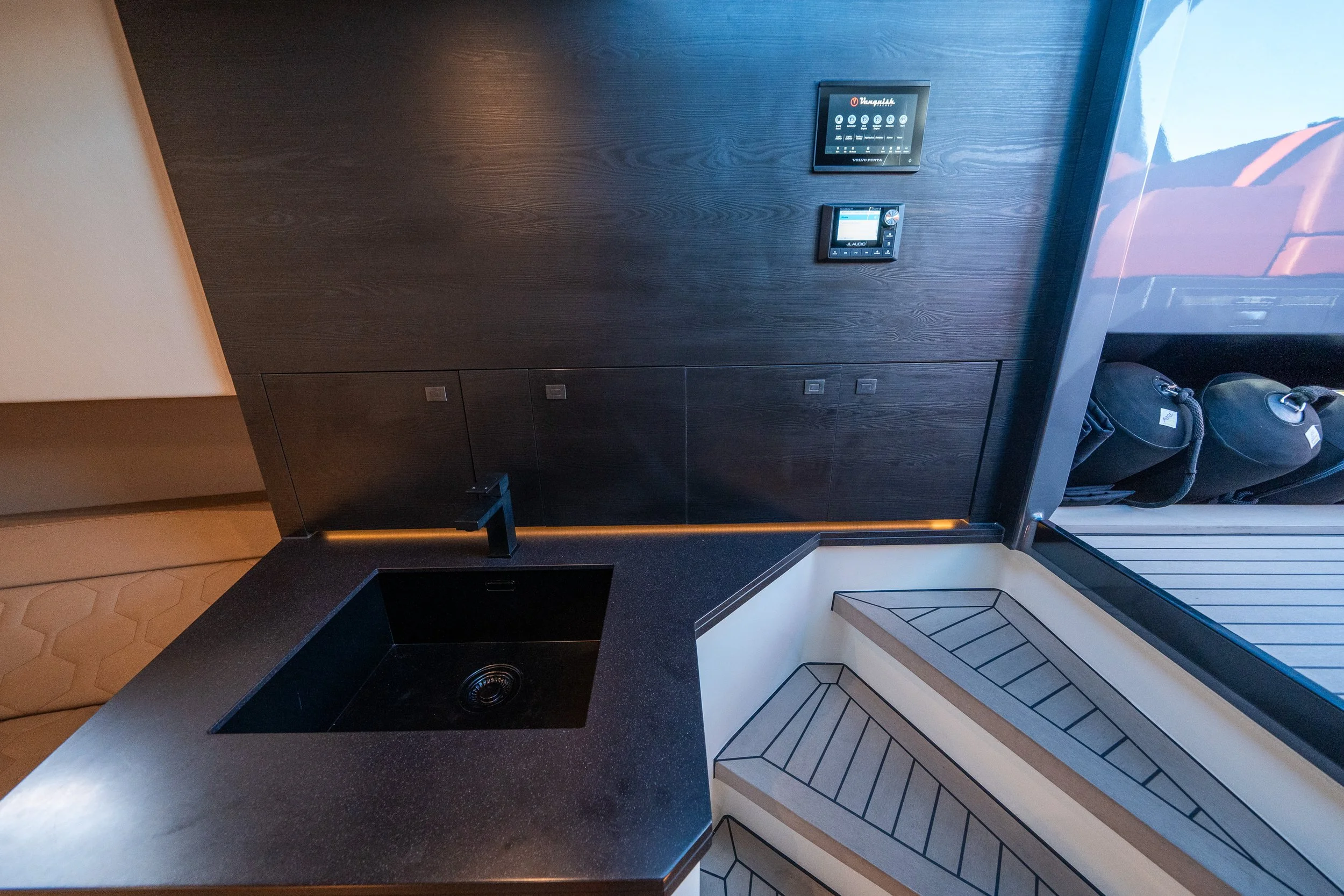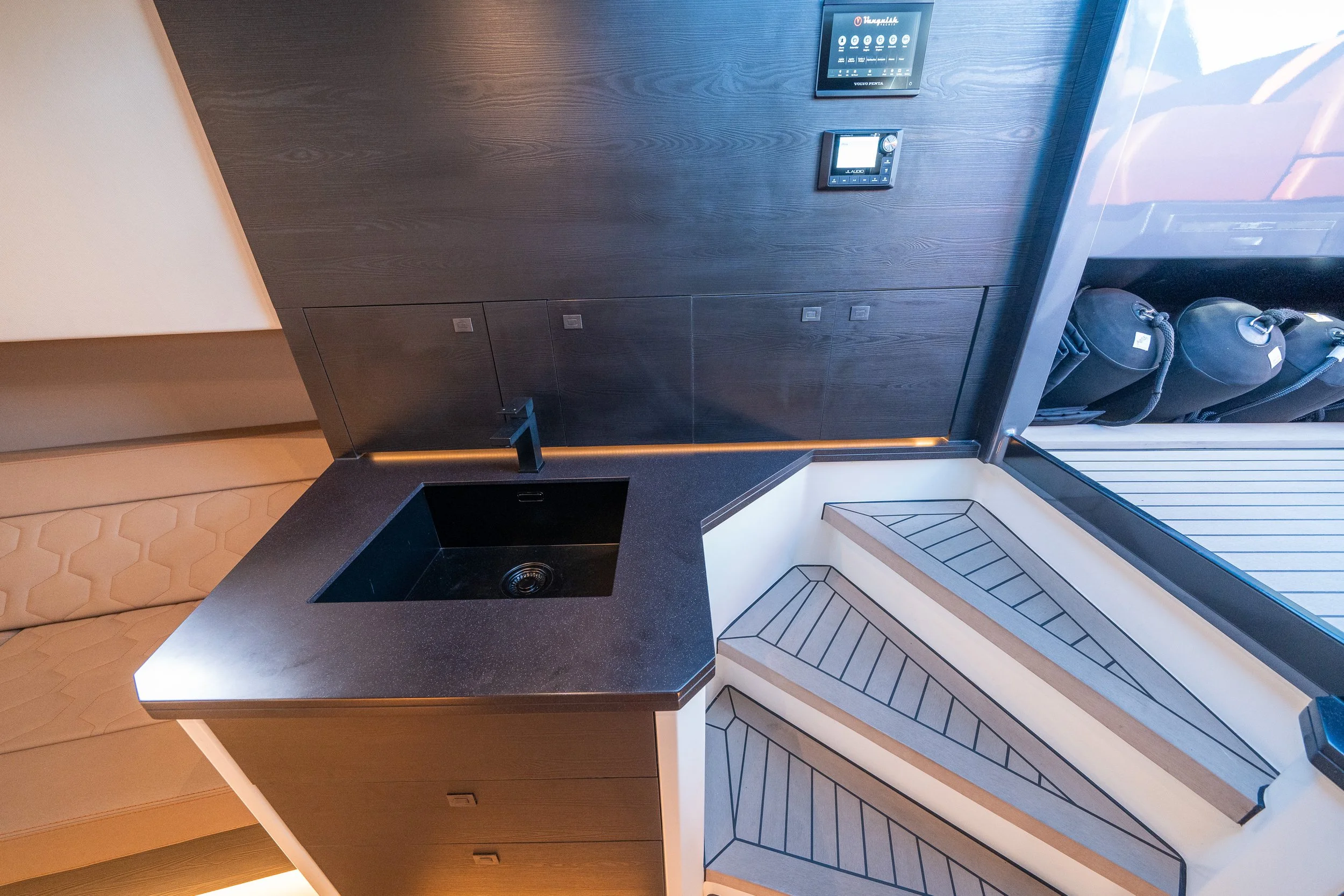 Twin high performance engines for exhilarating speed and smooth handling. Powered with 480hp Volvo IPS engines paired with joystick and DPS (Skyhook), this power package makes docking a breeze.